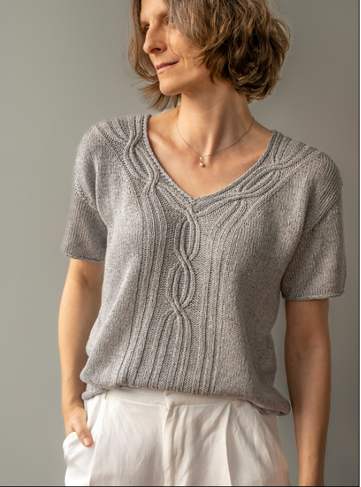 Sylvan Tee features a beautiful, unusual cable line intertwining and swaying around the back, the neckline and the sleeves. The tee is easy to dress up or down, with its classy but interesting appearance. Thoughtful details and smart finishing ensure a modern look, with an elegant touch.