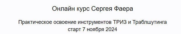 Вы освоите базовые инструменты ТРИЗ, а также несколько авторских методов Сергея Фаера.