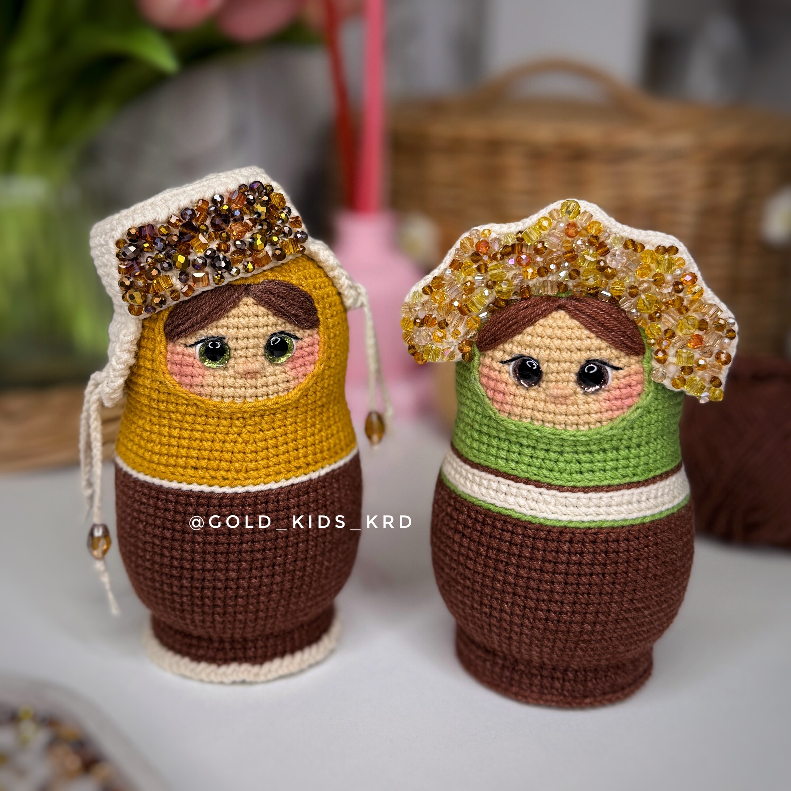 31 страницу с подробным пошаговым описанием вязания/оформления двух матрёшек;