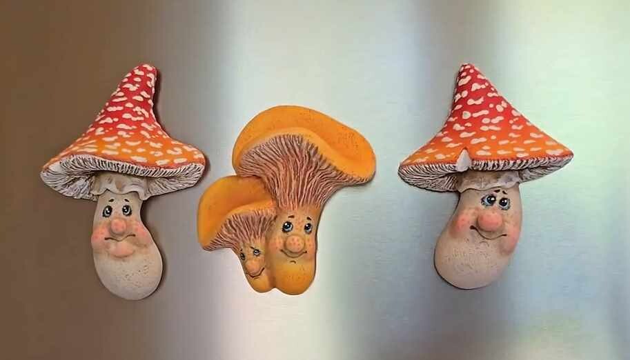 Грибы-магниты из массы папье-маше [Юлия Донскова]