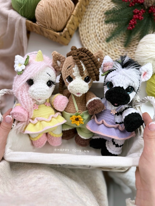Рост игрушек — 23 см (без учёта ушек/рога)