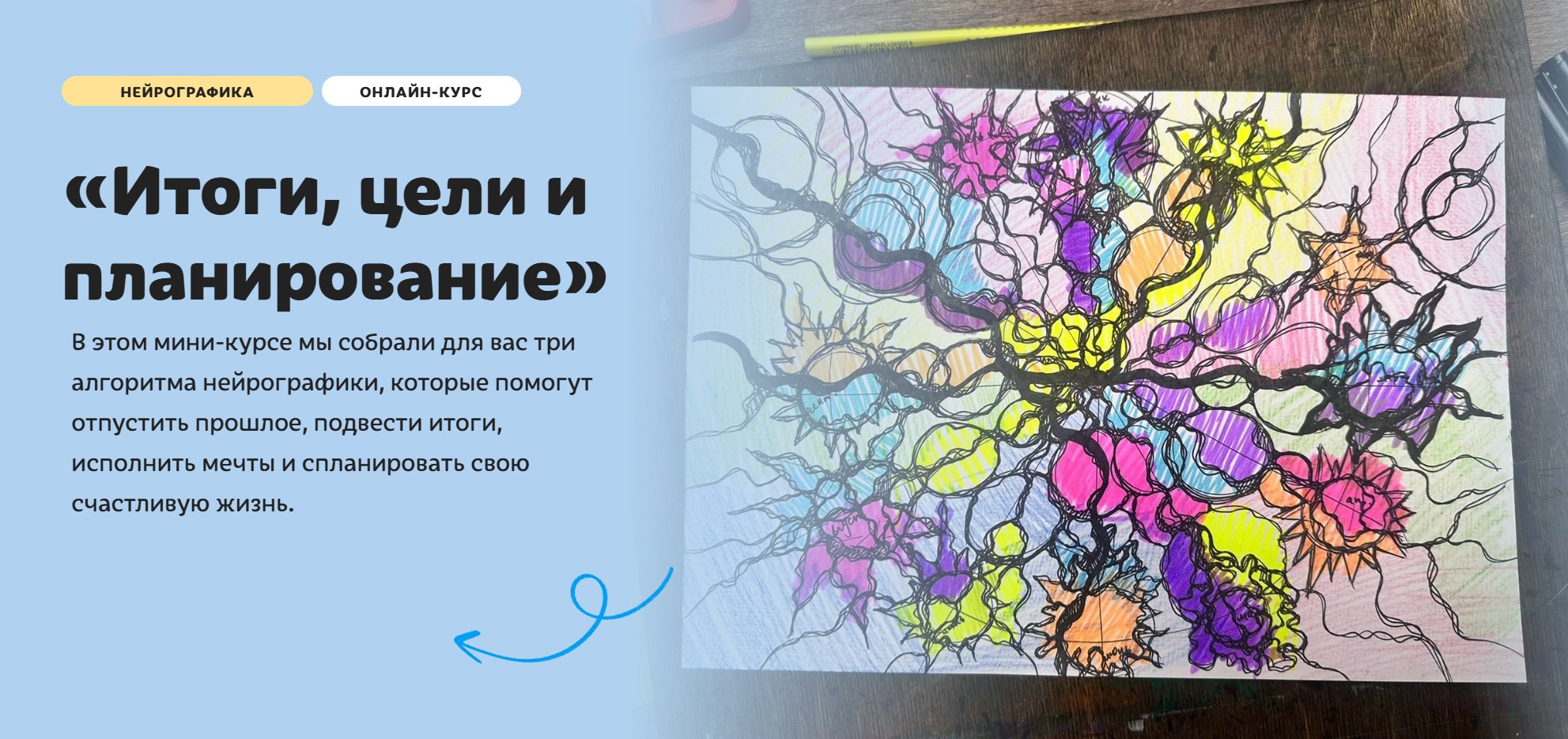 Курс «Итоги, цели и планирование» — это незаменимый инструмент для бережного завершения года и подготовки к новым возможностям в наступающем. Мы предлагаем вам погрузиться в три мощных алгоритма нейрографики, которые помогут провести глубокий самоанализ, подвести итоги уходящего года и извлечь ценные уроки из полученного опыта.