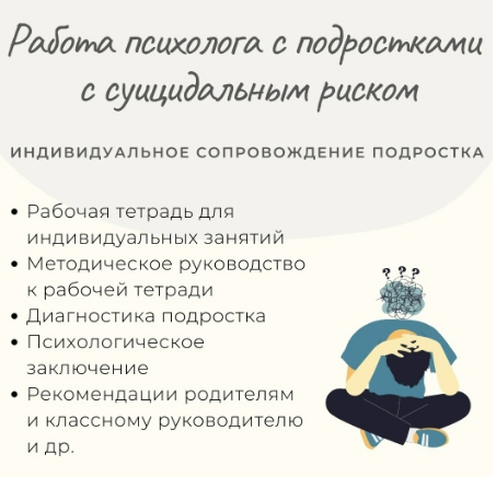 Рабочую тетрадь по гармонизации эмоциональной сферы подростка с суицидальным риском (формат PDF, 116 страниц). Состоит из 16 индивидуальных занятий.