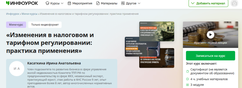 [Инфоурок] Изменения в налоговом и тарифном регулировании: практика применения [Ирина Касаткина]