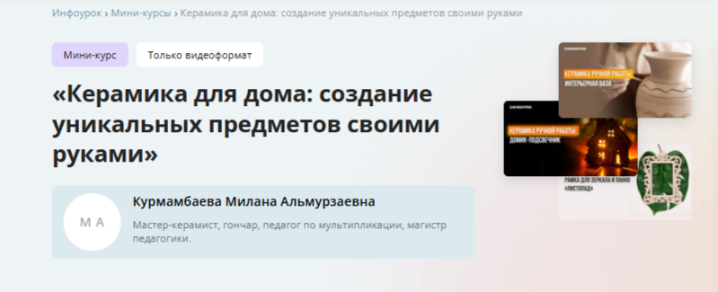 [Инфоурок] Керамика для дома: создание уникальных предметов своими руками [Милана Курмамбаева]