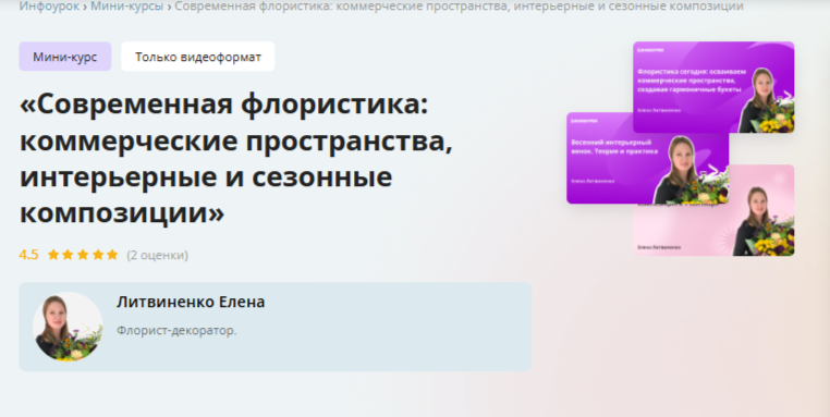 [Инфоурок] Современная флористика: коммерческие пространства, интерьерные и сезонные композиции [Елена Литвиненко]