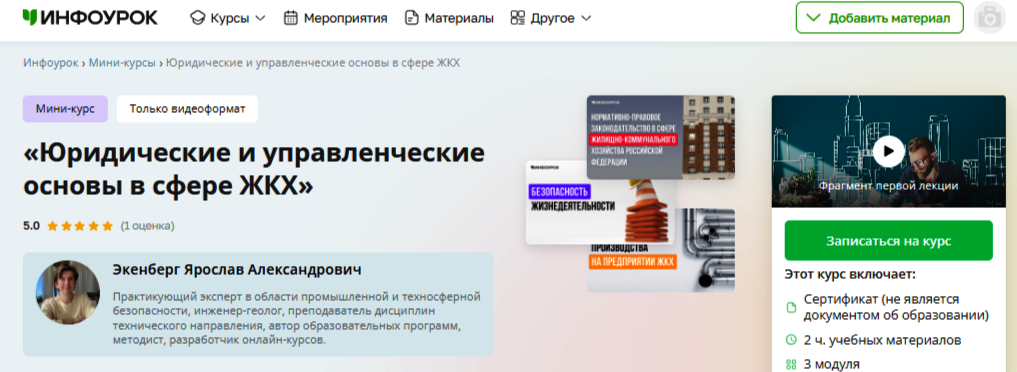 [Инфоурок] Юридические и управленческие основы в сфере ЖКХ [Ярослав Экенберг]
