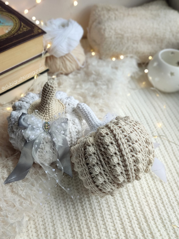 Формат — файл PDF. Высота тыковки 8 см (с учётом черешка 13-14 см). Сложность — средняя. Уроков вязания не содержит, подходит для тех, кто хорошо владеет крючком.