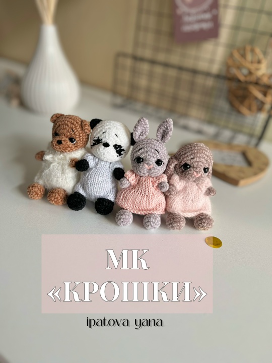 подробное описание вязания зайки с двумя видами ушек, панды (мишки) (PDF файл)
