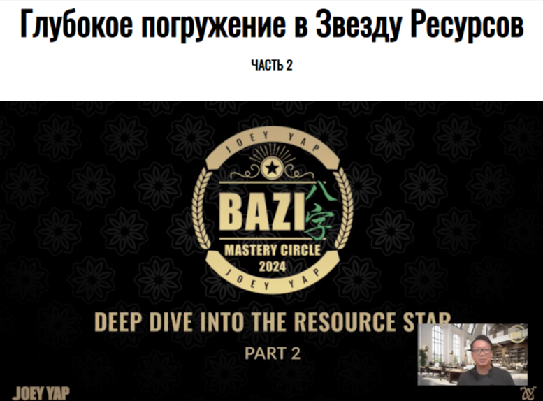 [Joey Yap Academy] Глубокое погружение в Звезду Ресурсов. Часть 2 [Joey Yap]