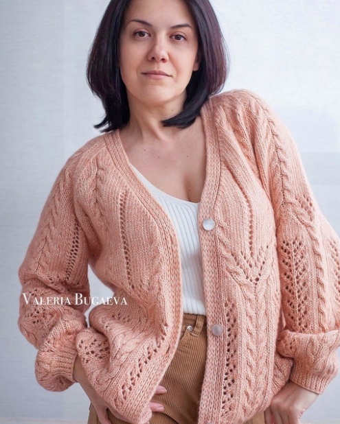 — расчёт петель на 4 размера (ширина готового кардигана от 48 до 61 см)