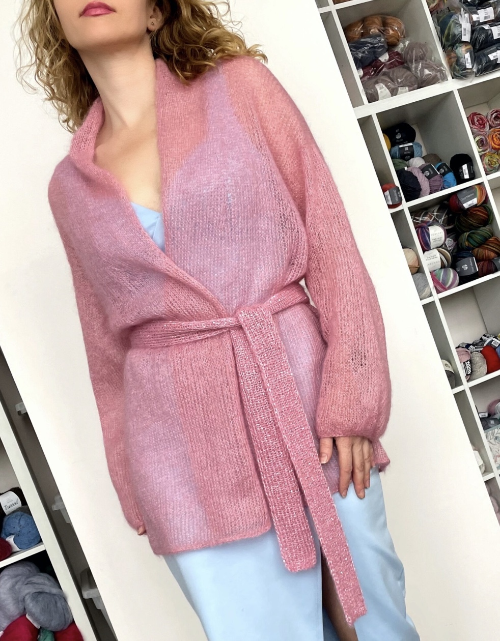 Изделие вяжется снизу вверх, поворотными рядами, лицевой гладью, без швов.