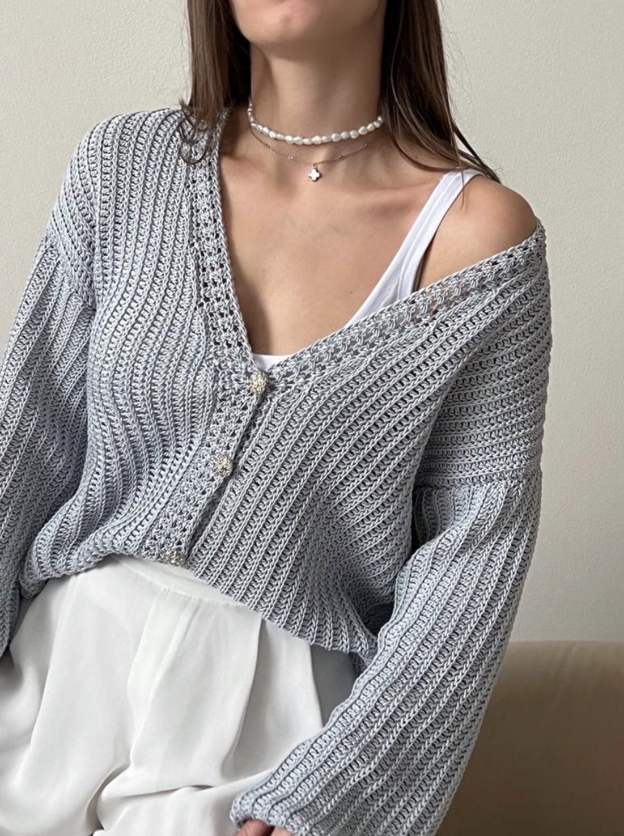 Стильный базовый вязаный кардиган крючком.