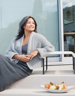 Вяжется без швов сверху вниз. Начинается с воротника, после чего петли набираются для верхней кокетки и провязываются до проймы. На этом этапе петли для туловища и рукавов разделяются, петли для рукавов откладываются, а петли для туловища провязываются до подола. Когда туловище готово, петли для рукавов провязываются до манжет круговыми рядами. Выбирайте размер с запасом 8–14 дюймов / 20,5–35,5 см.