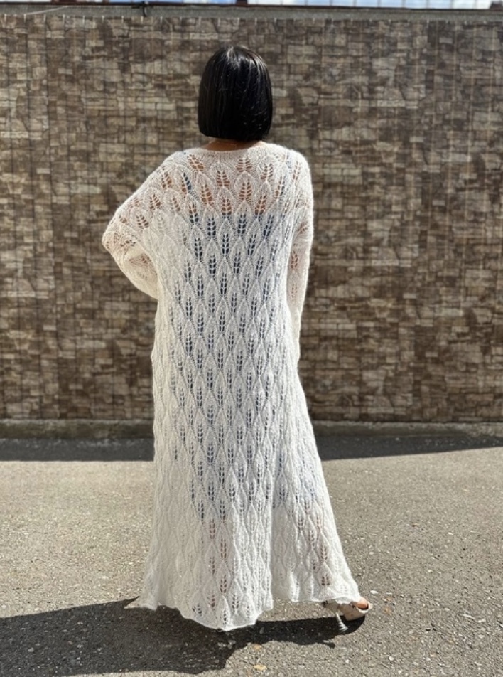 Кардиган выполнен из кид-мохера и нити пайеток на хлопке.