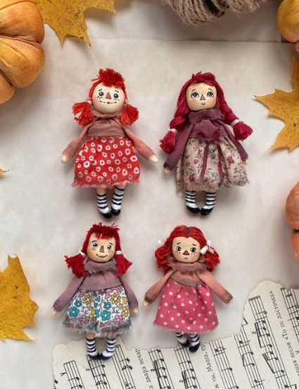 Куколка создана в смешанной технике: голова, руки и ножки из самозатвердеваемого пластика, а тело текстильное.