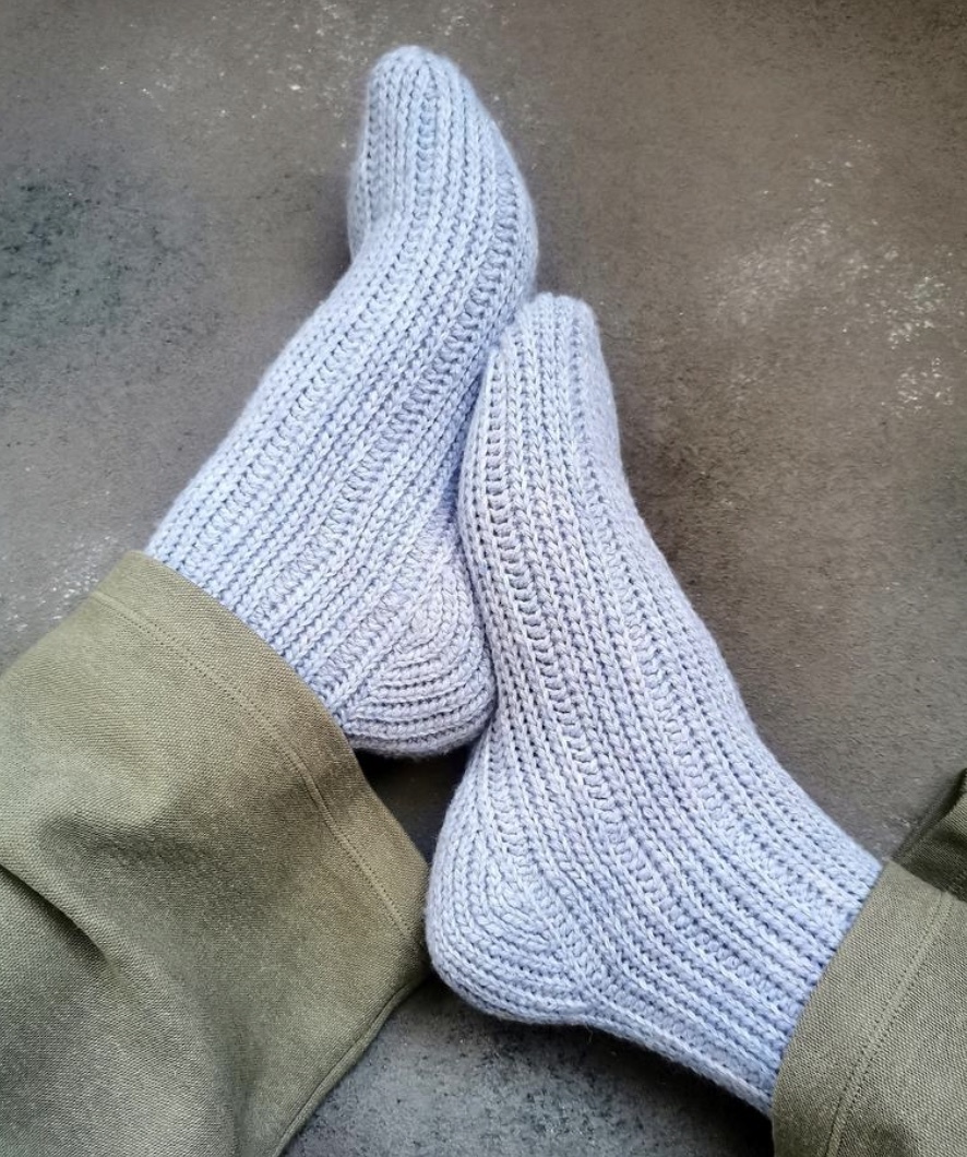 Для вязания подойдёт любая носочная пряжа с параметрами 380-420 м в 100гр и крючок 2,5-3 мм. Примерный расход на пару 100гр.