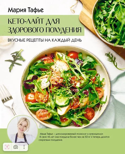 МАРИЯ ТАФЬЕ — блогер, нутрициолог, психолог, а также автор книг «Худеем вместе Минус 58» и «Похудей со мной! Вкусные фитнес-рецепты на каждый день» — продолжает делиться в своей новой кулинарной книге секретами здорового и сбалансированного питания, которое никого не оставит равнодушным. На этот раз она рассказывает о своей уникальной методике «Кето-лайт» и собрала лучшие варианты завтраков, обедов, ужинов и перекусов,богатых белком, полезными жирами и сложными углеводами. Каждый рецепт — это баланс вкуса и пользы, а сама методика позволяет значительно терять вес без голода, ограничения порций и подсчета калорий. Готовьте с удовольствием, ешьте с пользой и достигайте своих целей вместе с Марией Тафье и методикой «Кето-лайт»!