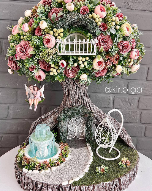 Интерьерная композиция Райское дерево. Фонтан. (Цветущее дерево с балконом. Фонтан)