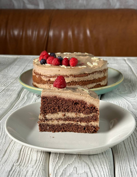 Торт не содержит белый сахар, глютен и молочные продукты. Крем очень нежный, в меру жирный.