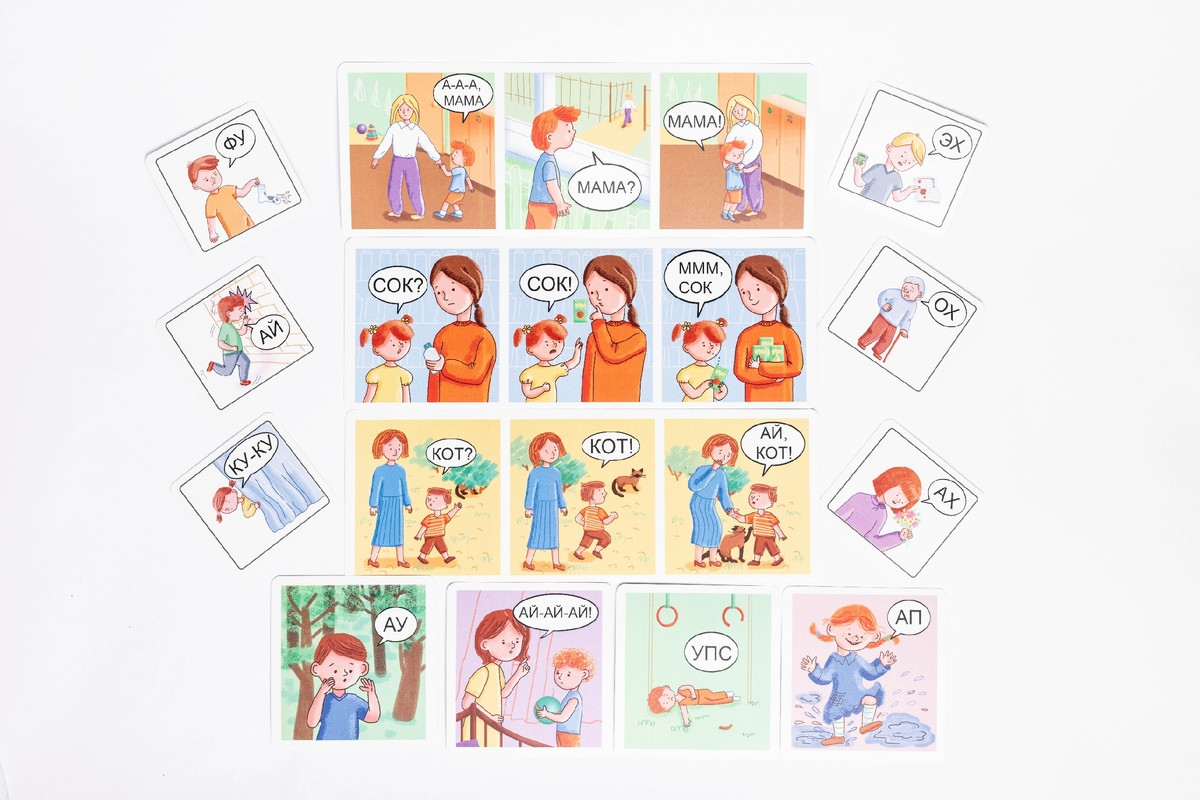 26 сюжетных историй , каждая из которых состоит из 3 последовательных картинок ( всего 78 карточек )