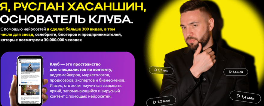 Клуб — это пространство для специалистов по контенту, видеомейкеров, маркетологов, продюсеров, экспертов и бизнесменов. И всех, кто хочет научиться создавать яркий, запоминающийся и вирусный контент с помощью нейросетей.
