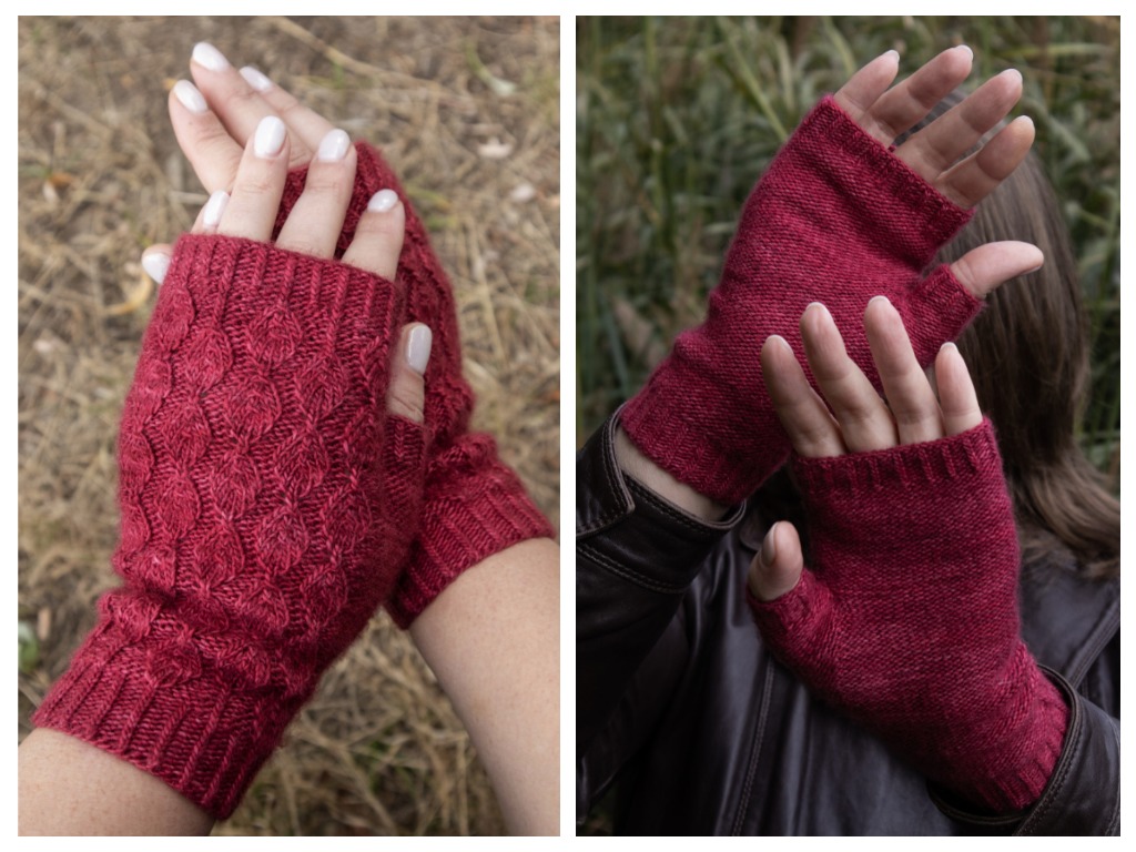 Описание в формате pdf содержит текстовое объяснение процесса вязания митенок, схемы и фото вспомогательного процесса.