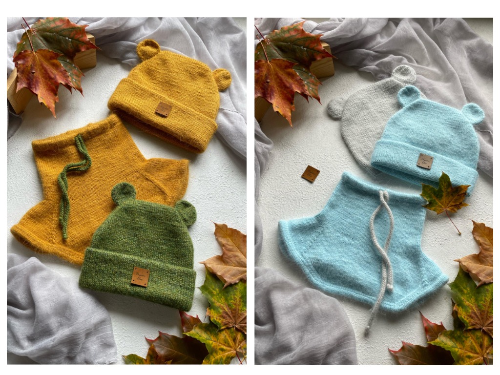 Отличный вариант для осени! МК на шапочку с ушками мышонка и манишка!