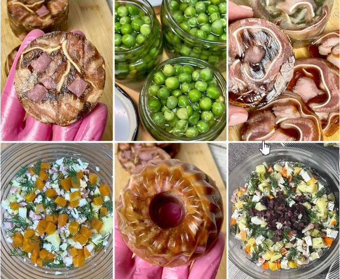 зельцы — разновидность холодцов — сделать в виде цилиндров для нарезки, порционными венками и даже «пирожными»;