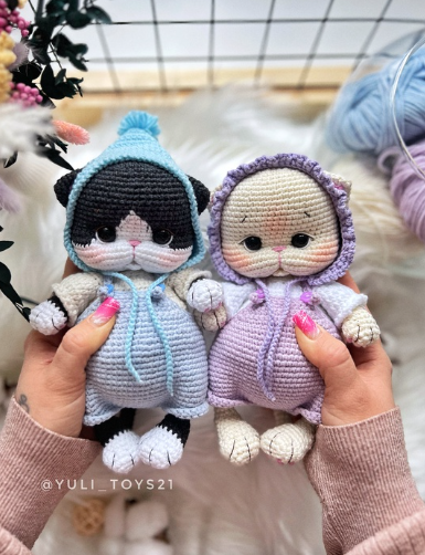 • МК представляет собой PDF-файл, состоящий из более 30 страниц; • Включает в себя подробное описание вязания игрушки крючком; • Описание 2-х вариантов головы, верхний и нижних лапок, тела; • Подробное описание одежды и аксессуаров для мальчика и для девочки): -комбинезон -Кофточка -Чепчик • Список используемых материалов; • Содержит большое количество фото; • Видео «Как пришить ротик»; Размер игрушки при использовании пряжи YarnArt jeans примерно 21-22 см. Внимание Данный мастер — класс не содержит уроков по вязанию. Рассчитан на тех, кто уже владеет основными навыками вязания крючком.