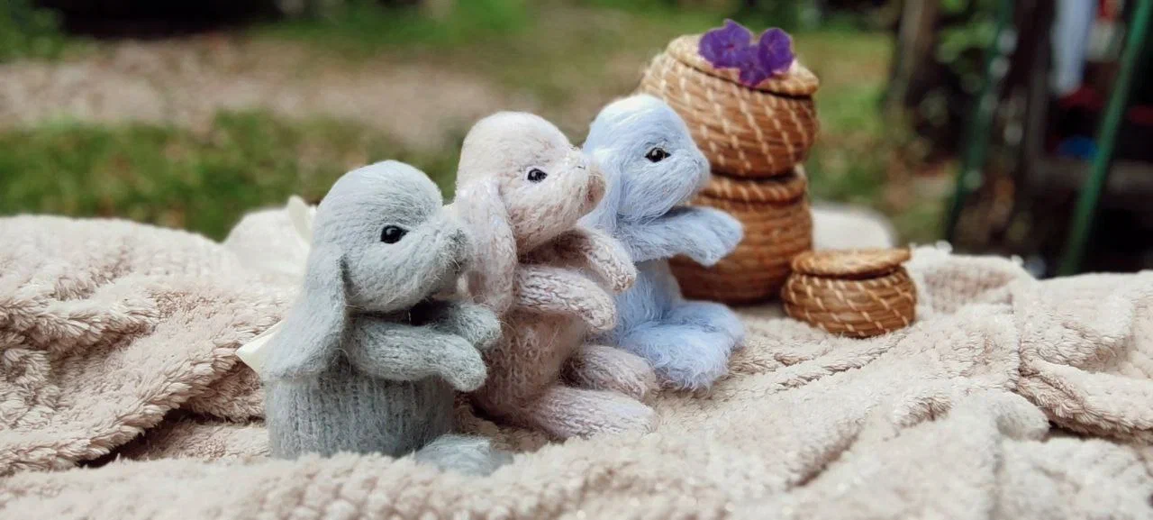 Крольчонка можно вязать из любой пряжи, которую можно начесать, мне больше всего понравилось вязать из пуха норки в три нити + 1 дополнительная, но выбор за вами!