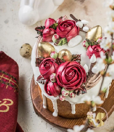 Кружевной кулич с цветами и яйцами [Надежда Коломейцева]