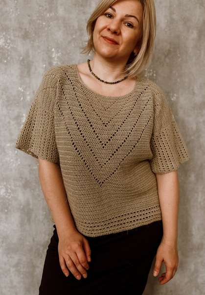 Вы используете свои мерки и свою плотность вязания, основываясь на последовательность расчётов, представленную в мастер-классе.