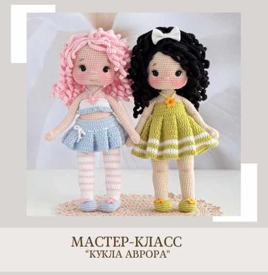 Кукла стоит самостоятельно только в обуви с твердой подошвой. В вязаных туфлях стоять самостоятельно не может. Из волос можно заплетать различные причёски. Уровень сложности — средний. Данный мастер-класс не содержит уроков по вязанию (для вязания необходимы основные навыки вязания крючком).