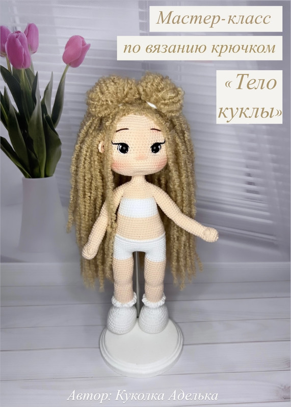 Подробный мастер-класс по вязанию крючком тела куклы. Содержит 70 фотографий процесса создания основы куклы, крепления поворотной головы, оформления личика, крепления волос. Рост готовой куклы 32 см.