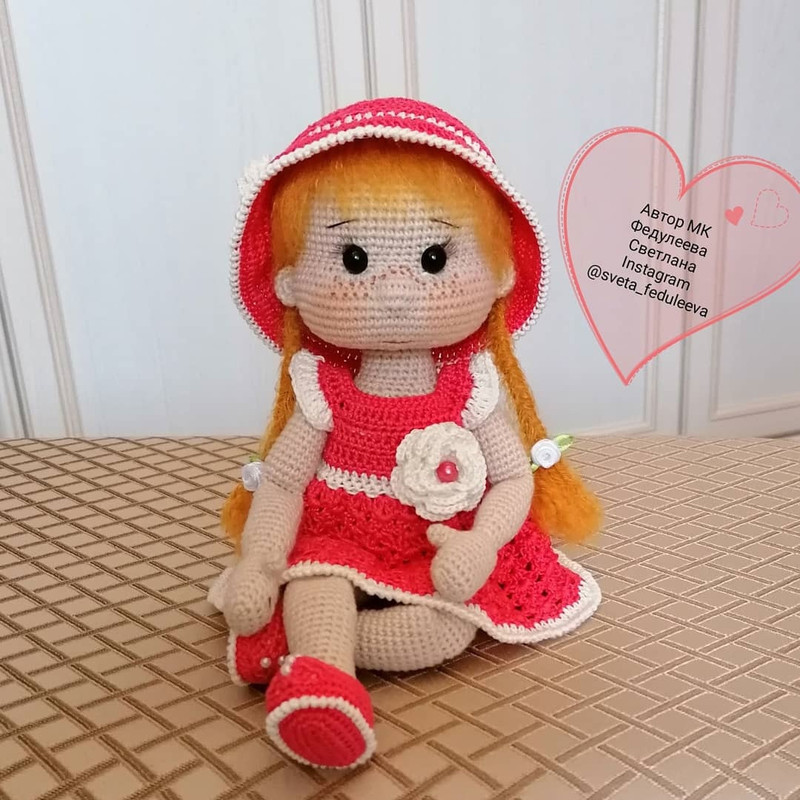 Куколка связана из Gazzal Baby Cotton, волосики из Nako Paris.