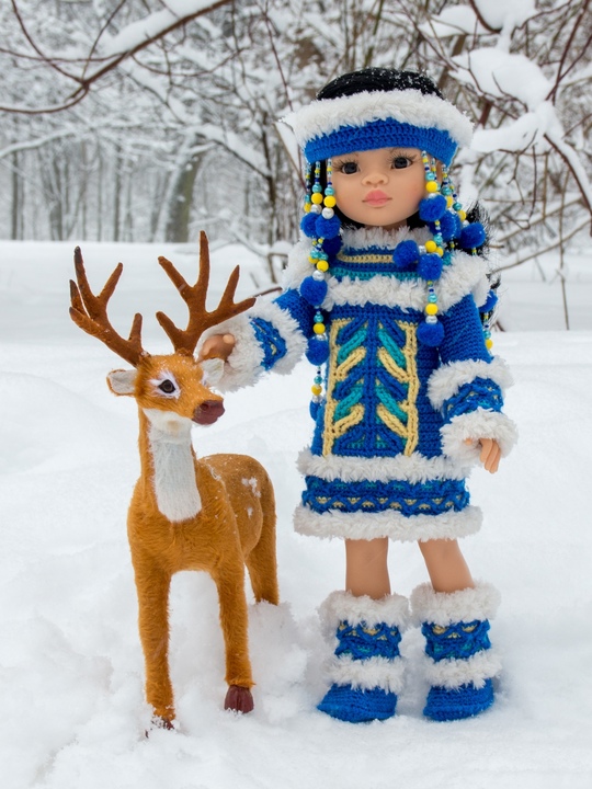 Руководство по вязанию крючком комплекта «Якутяночка» для кукол Паола Рейна 32 см, состоит из 15 страниц с описанием и фотографиями.