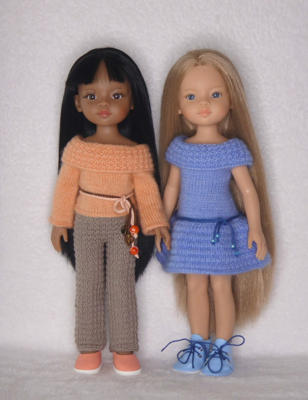 В данном МК пошагово описан процесс вязания спицами брючек, джемпера и платья для кукол Паола Рейна 32-34 см.