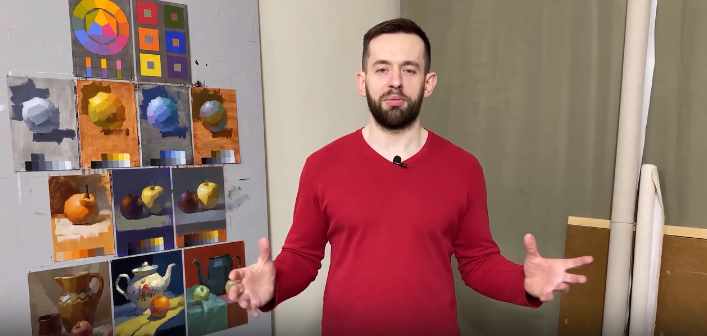 родственные и контрастные цвета и как с ними работать , как строится теплая и холодная цветовая гамма, поймете откуда берутся разные оттенки и как писать цветно! Мы подробно разберем такую ключевую тему как теплый и холодный свет и взаимодействие цвета и тона! Будем писать постановки в родственной цветовой гамме, используя минимальный набор цветов и рассмотрим схему работы, когда композиция строится на агрессивных и контрастных цветах , таких как красный — зеленый и синий — желтый! Ну и конечно много тонкостей и нюансов, которые вы сами увидите в процессе работы!