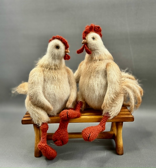 Рост Курочки из данной пряжи 22 см, Петушок 20 см.