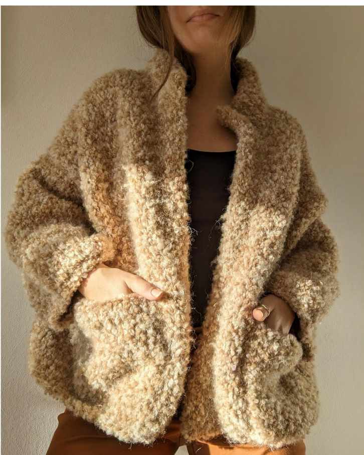 Polarteddyjacket — это объёмная куртка, которая вяжется снизу вверх платочной вязкой и приобретает уютную структуру за счёт использования двойной пряжи. У неё высокий воротник, она застёгивается на пуговицы и невидимые кнопки. К куртке можно пришить карманы и клапаны. Рукава также имеют очень широкую форму, чтобы обеспечить максимальный комфорт при ношении.
