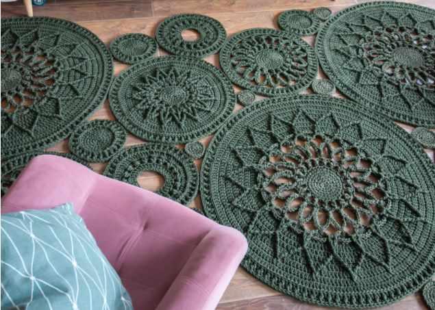 Также вы сможете связать круглый коврик, диаметром 106см (расход шнура: 617м)
