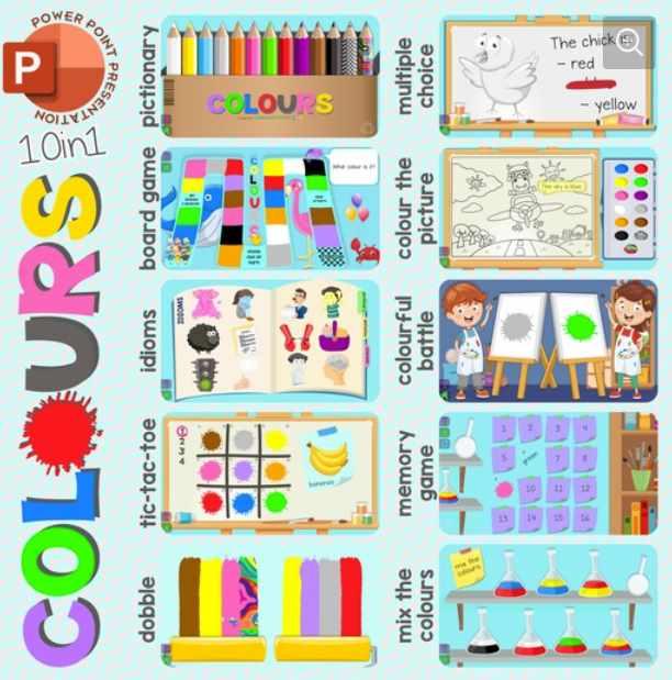 Самая красочная презентация Colours 10in1 для оттачивания цветного вокабуляра ваших студентов! Использование интерактивных игр и заданий позволит сэкономить время и нервы при подготовке к урокам, вовлечь и удивить детей.