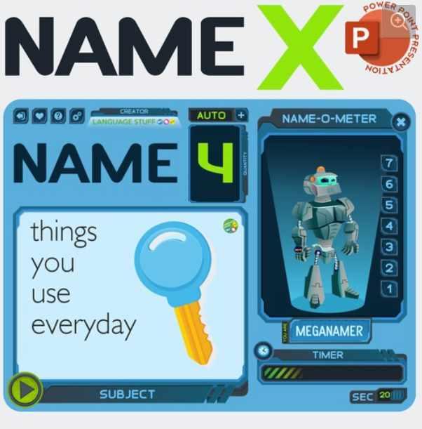 Name X — быстрая и увлекательная игра, которая поможет легко освежить лексику в увлекательной форме, активизировать или проверить начальные знания по разным темам на ОНЛАЙН и офлайн занятиях, а также подойдет на warm-up или cool down, заняв всего 5 минут оставшегося времени с пользой.