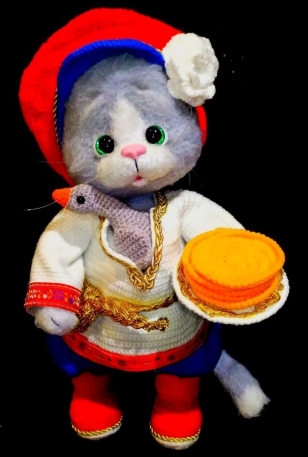 Необходимые материалы Для тела игрушки – пряжа КАМТЕКС ХЛОПОК ТРАВКА ( КХТ) – тон 008 и 205 Для одежды – пряжа ALIZE HAPPY BABY- тон 55 , 56 и 141 Для гусика и блинов – любые остатки пряжи 1. Пряжа основного цвета -170 г ( 220 м в 100 г) 2. Пряжа дополнительных цветов – белый ( кхт) – 20 г . белый – 70 г , красный – 60 г , синий 100 г 3. Крючок под вашу пряжу – у меня 1.5 мм 4. Любой наполнитель для игрушек 5. Глазки – 12 мм 6. Носик овальный 15*7 мм 7. Прозрачный клей – у меня МОМЕНТ КРИСТАЛЛ 8. Любая проволока – по желанию ( примерно 1.2 м – у меня алюминий АПуВ 10*6) 9. Розовый лак для ногтей 10. Твердый пластик или картон для стелек 11. Липучка для одежды или щётка для животных 12. Тесьма 10 мм в русском народном стиле – примерно 1 м 13. Декоративная тесьма золотого цвета – примерно 1 м 14. Черная тонкая нить 15. Полубусины для глазок гуся – 7 мм 16. Леска для рукоделия – диаметр 0.5 см 17. Горячий клей – пистолет 18. Любые пуговицы – 3 шт