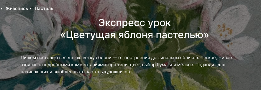 Приглашаем вас в атмосферное весеннее путешествие — мы будем писать пастелью цветущую ветку яблони. Это мягкий этюд, который дарит ощущение света и настоящей весны.