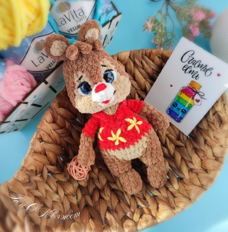 Бурундук цельновязаный, пришиваются только ушки. Рост 18 см при использовании рекомендуемых материалов