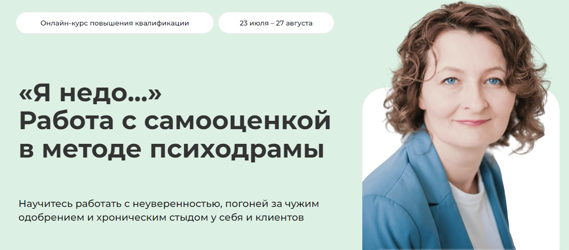 Курс Ольги Малининой «Я недо… Работа с самооценкой в методе психодрамы» — это возможность