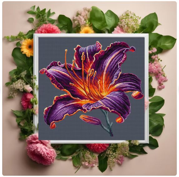 анастасия ермакова, лилейник, современный дизайн цветочного шитья, схема вышивки цветов лилии, схема для вышивки крестом daylili pdf