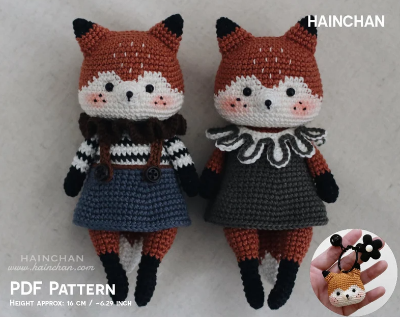 МАТЕРИАЛЫ — Пряжа: тонкая или легкая пряжа DK — Крючок размером 2 мм — Черные защитные глазки размером 5 мм — Волокнистый наполнитель — Черная вышивальная нить — Маленькая пуговица (0,9 или 1 см) — Иголка для пряжи — Маркер для стежков — Булавки Высота примерно: 16 см / ~6,29 дюйма